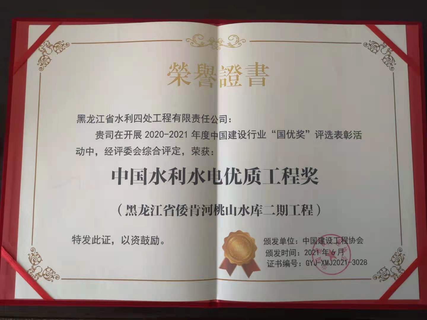 2020年以來該企業(yè)榮獲了水利部“水利安全生產(chǎn)標(biāo)準(zhǔn)化一級單位”、中國施工企業(yè)協(xié)會“全國安全文明標(biāo)準(zhǔn)化工地”、黑龍江省建三江管理局“2021年度工程建設(shè)安全生產(chǎn)先進(jìn)單位”等榮譽(yù)稱號。
