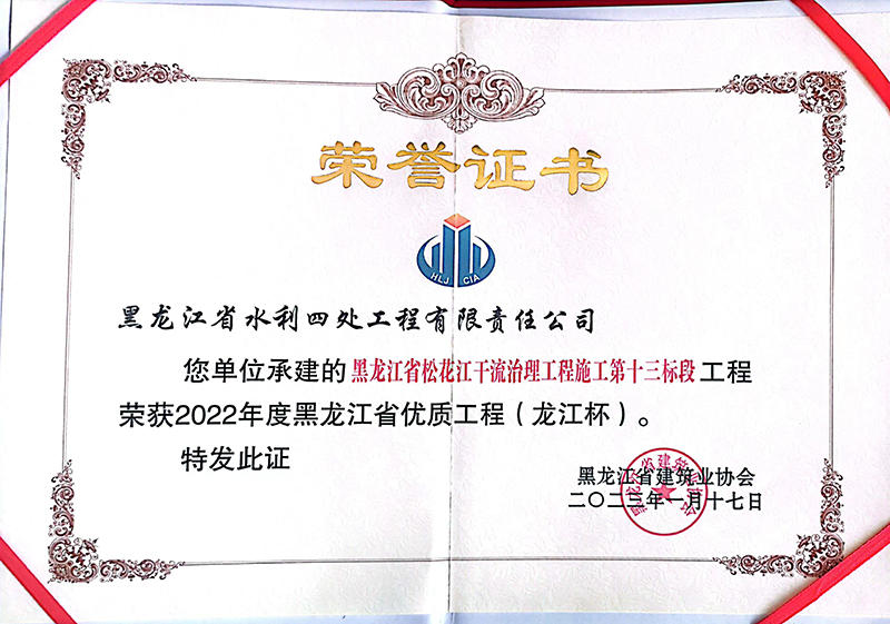 黑龍江省優(yōu)質(zhì)工程(龍江杯)獲獎(jiǎng)證書(shū)